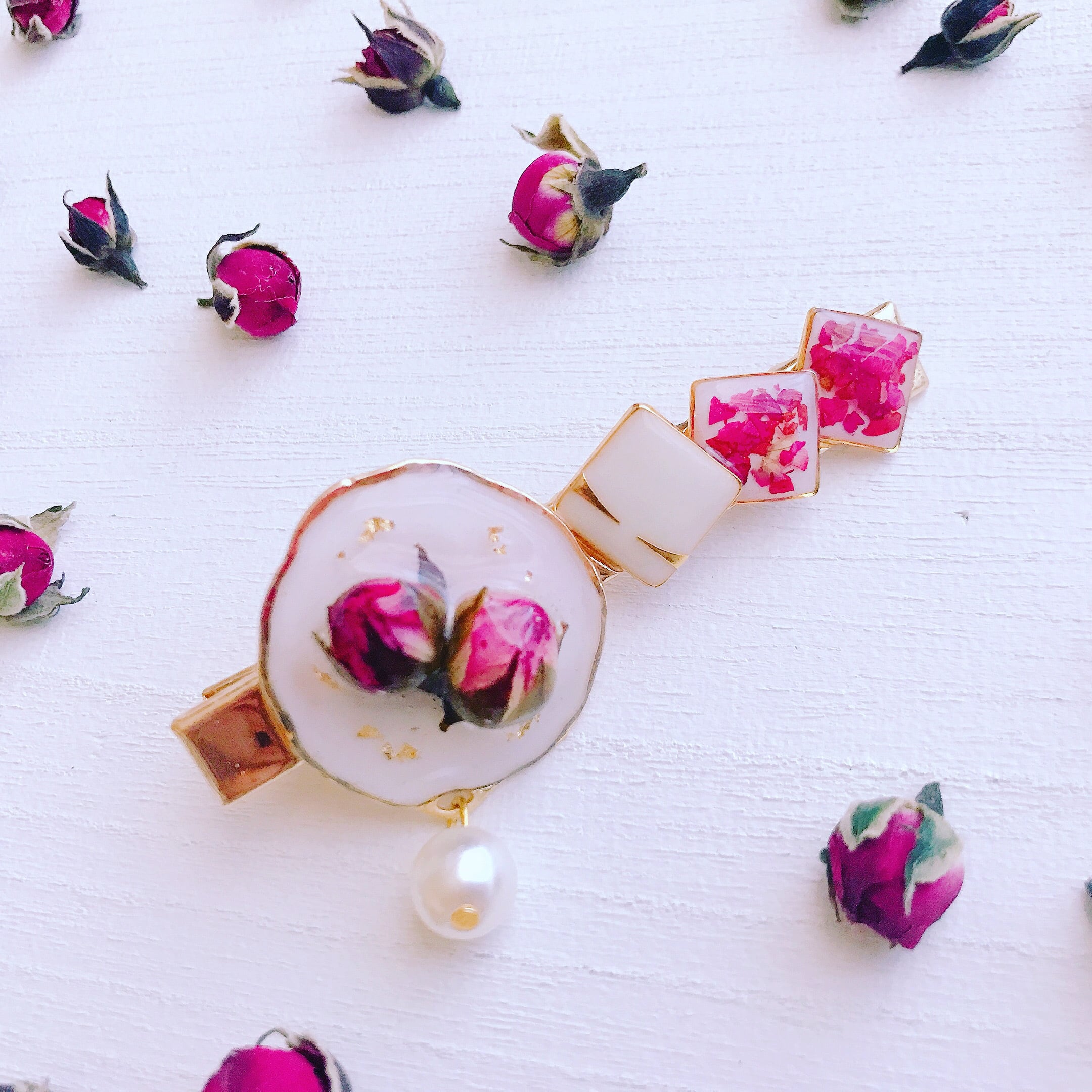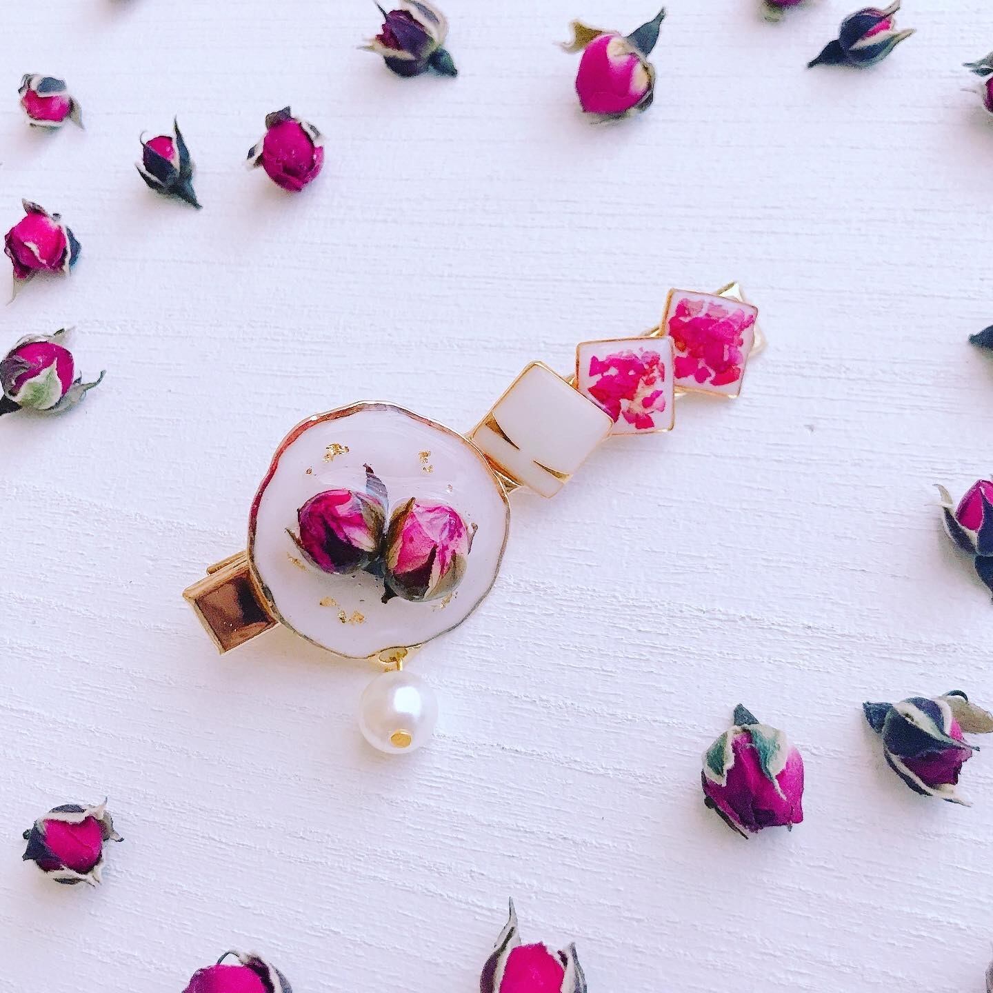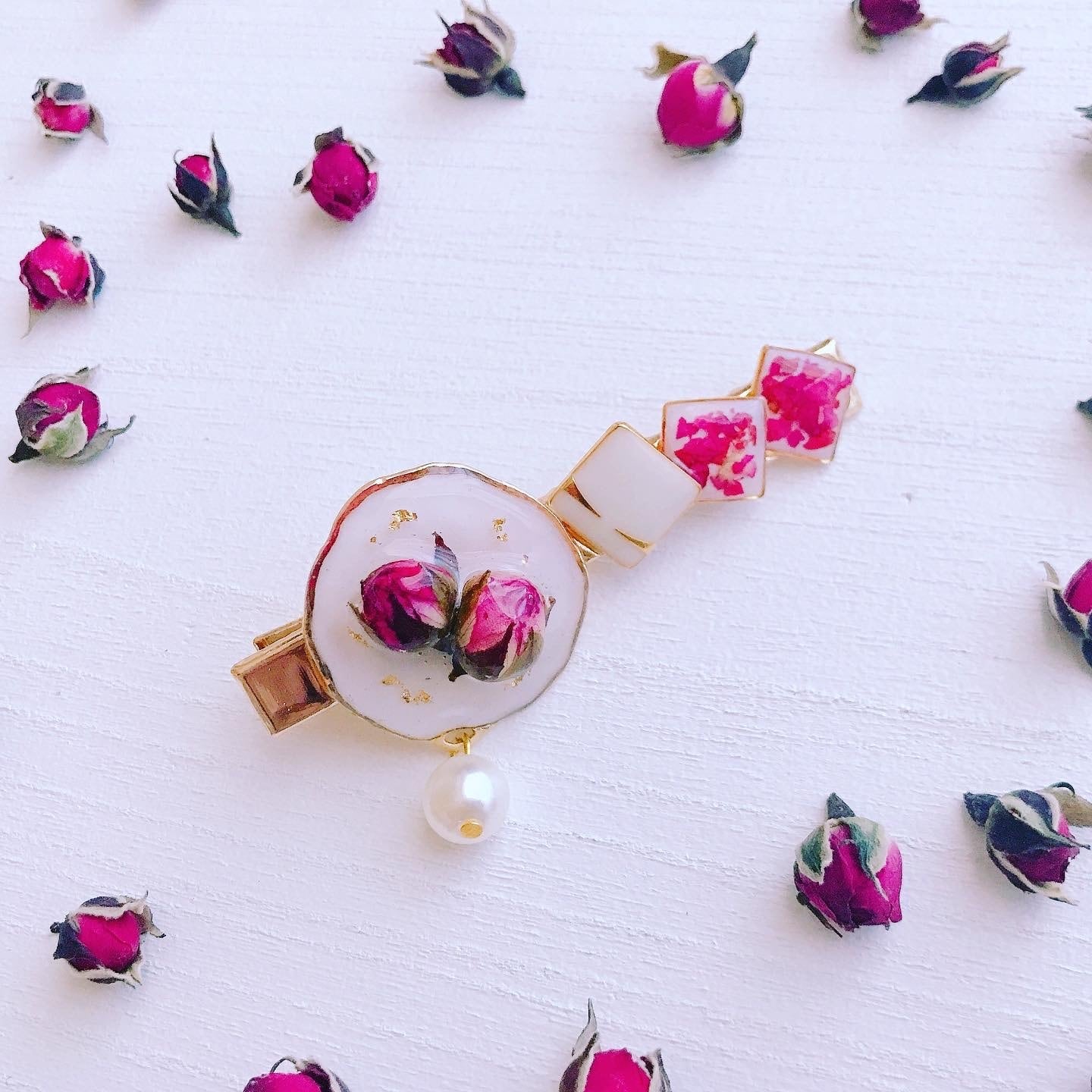 薔薇のつぼみをまるごと閉じ込めたヘアクリップ✧*。